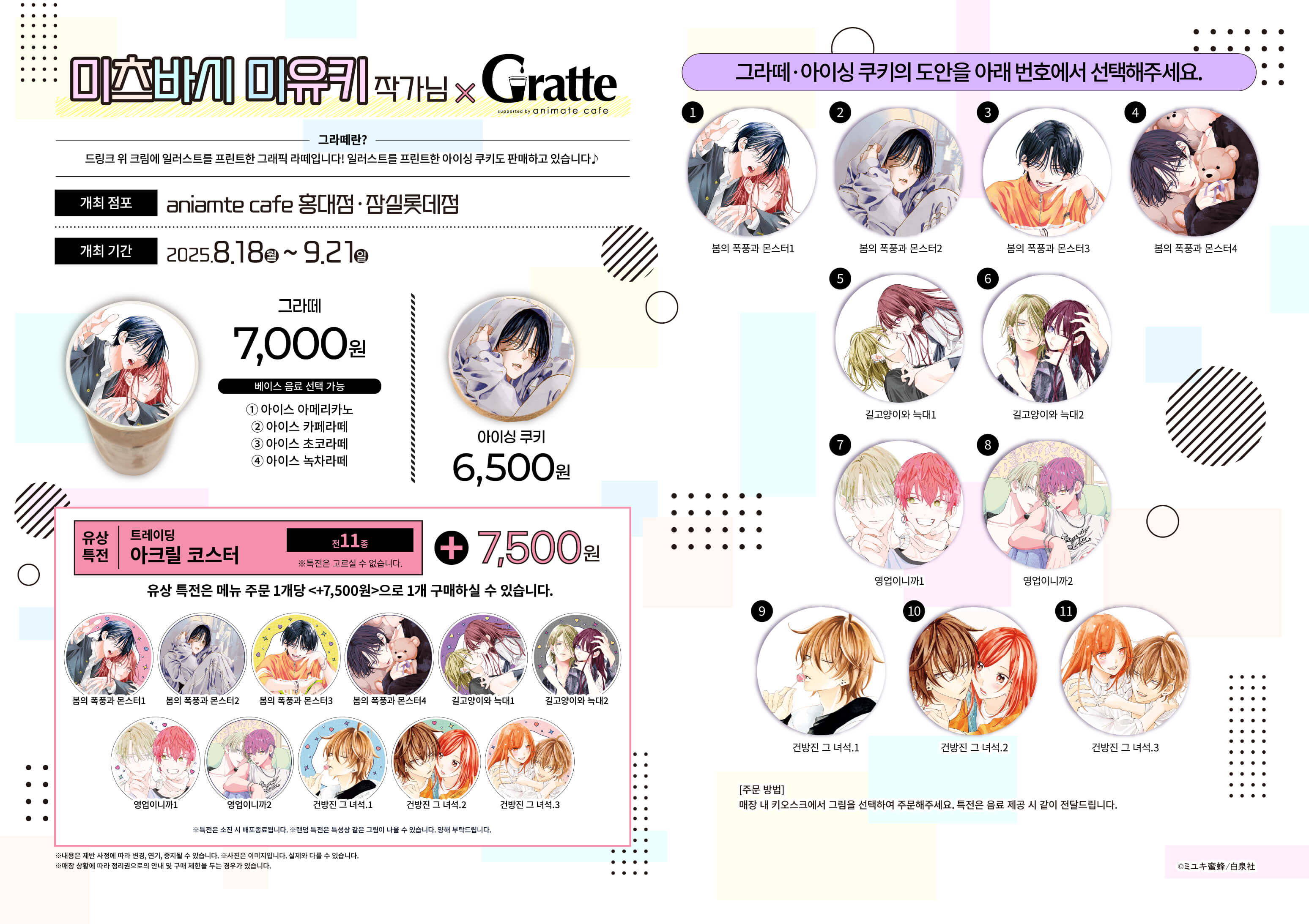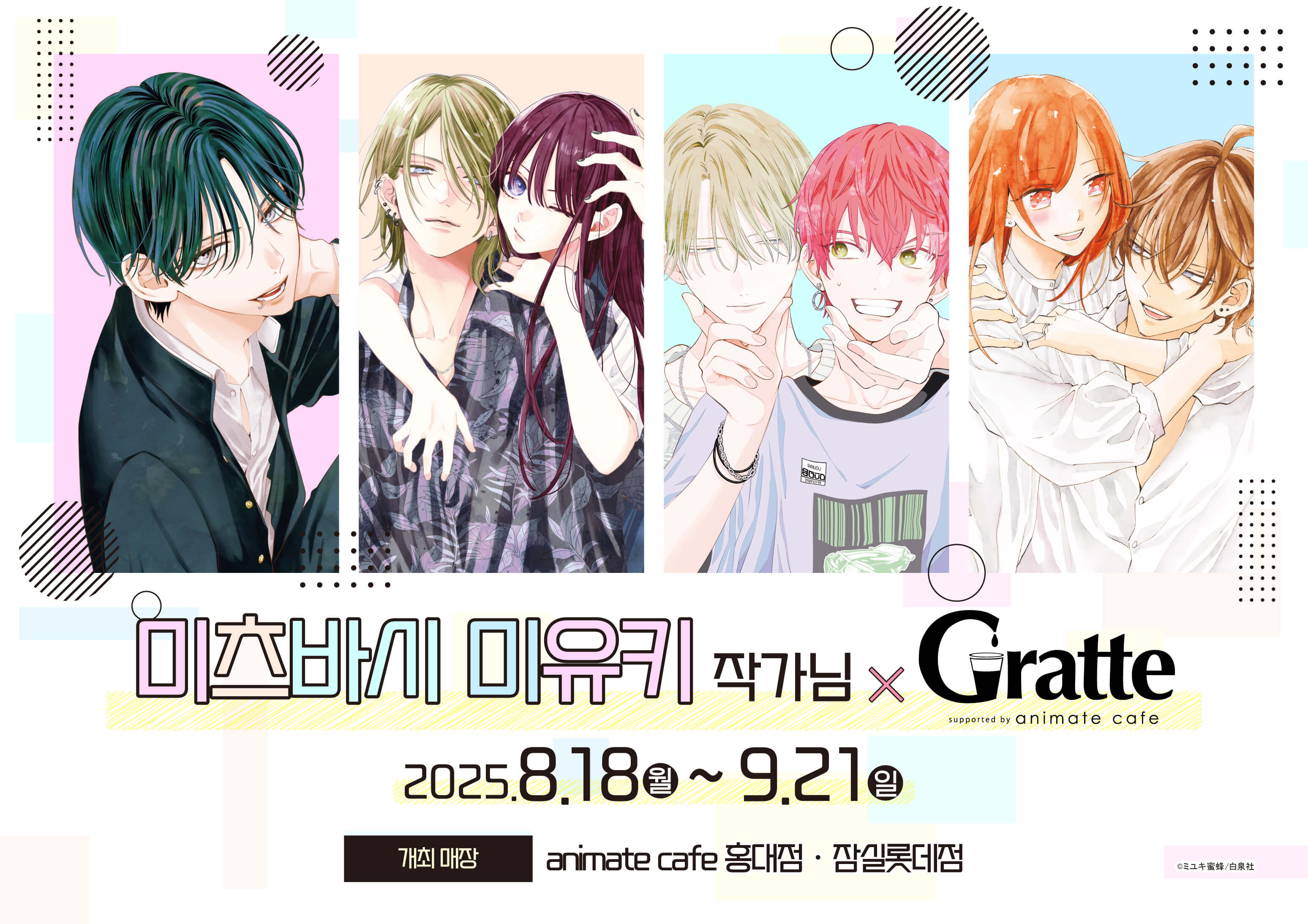 미츠바시 미유키 작가님XGratte는 애니메이트 카페 홍대점과 잠실롯데점에서 진행하고 있습니다.