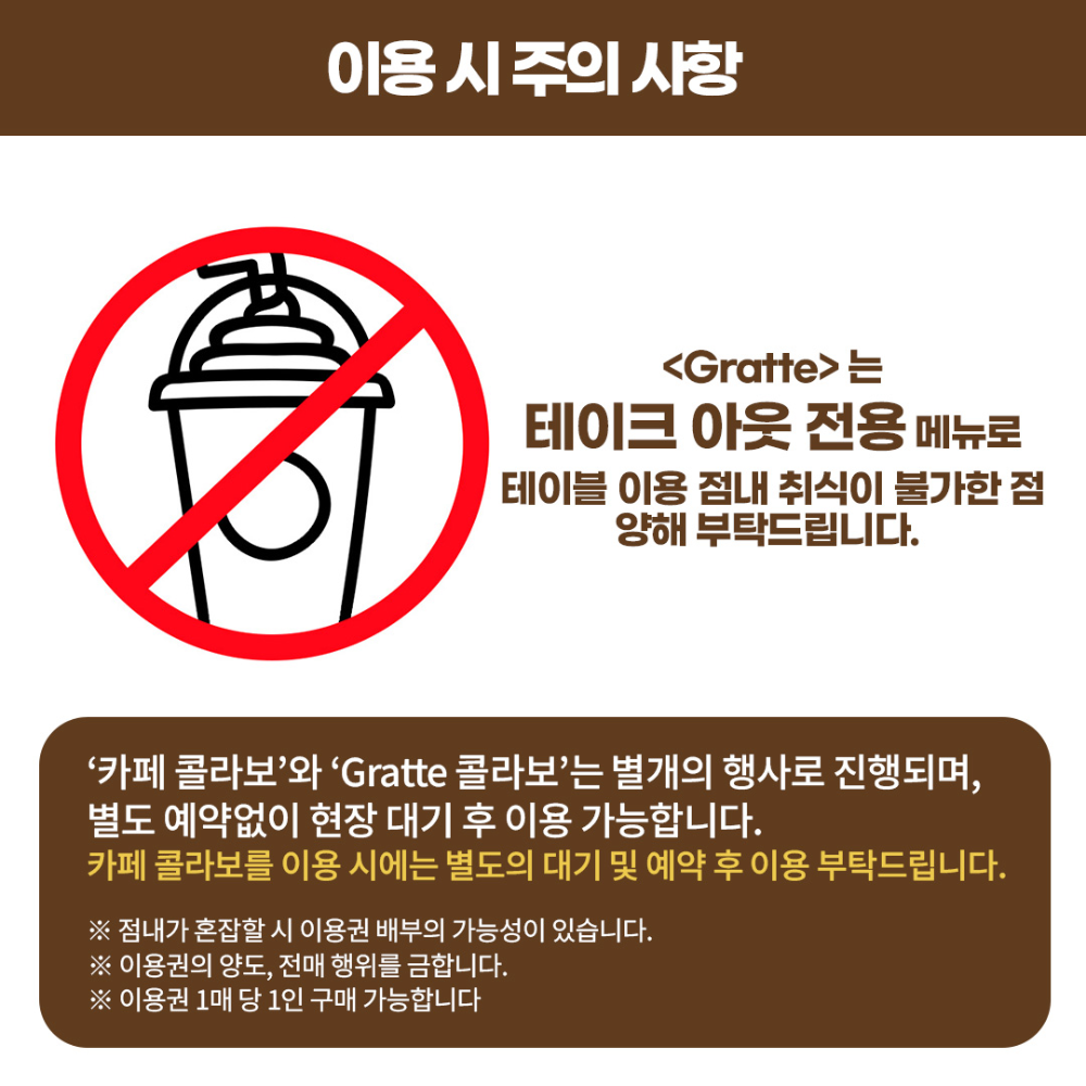 Gratte는 take out만 가능하기 때문에 키오스크에서만 주문을 받고 있습니다.