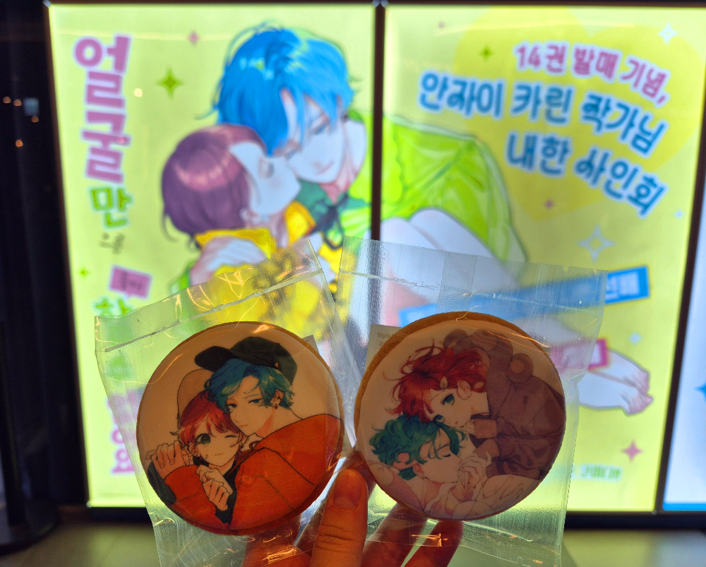 쿠키를 산 김에 사인회 앞에서 사진도 살짝 찍었습니다!