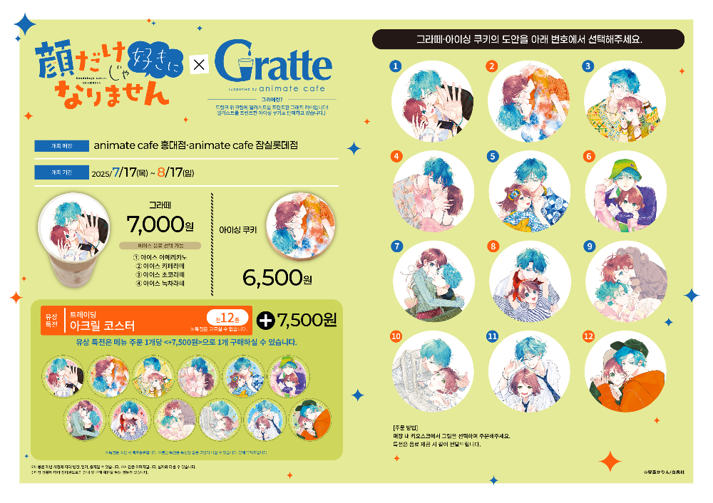 얼굴만으론 좋아할 수 없어요XGratte는 애니메이트 카페 홍대점과 잠실롯데점에서 진행하고 있습니다.