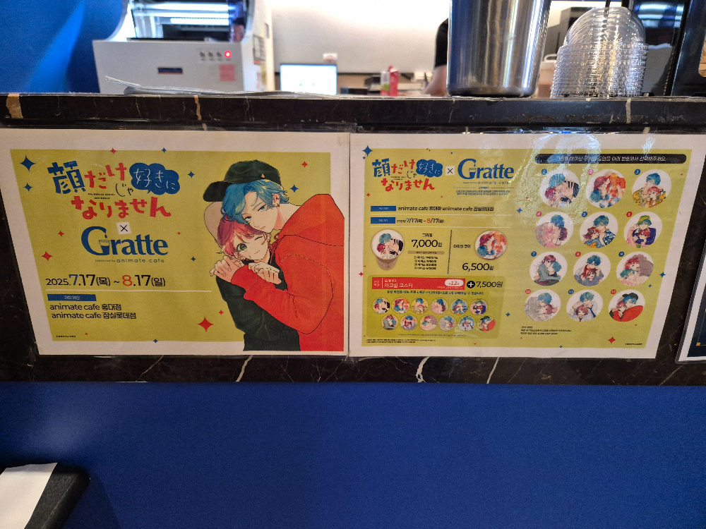 대놓고 붙어있지는 않지만, 애니메이트 카페 쪽에 보면 위의 사진처럼 조그맣게 Gratte도 붙어 있습니다ㅋㅋㅋㅋㅋ