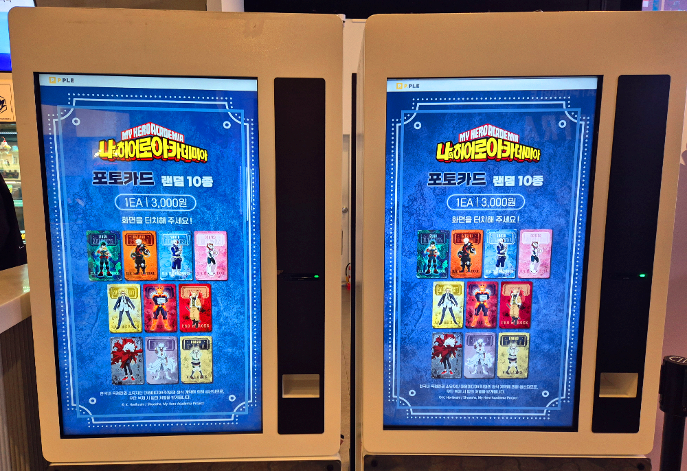 가게 뒷편에 나의 히어로 아카데미아 포토 카드를 뽑는 기계도 있었어요!