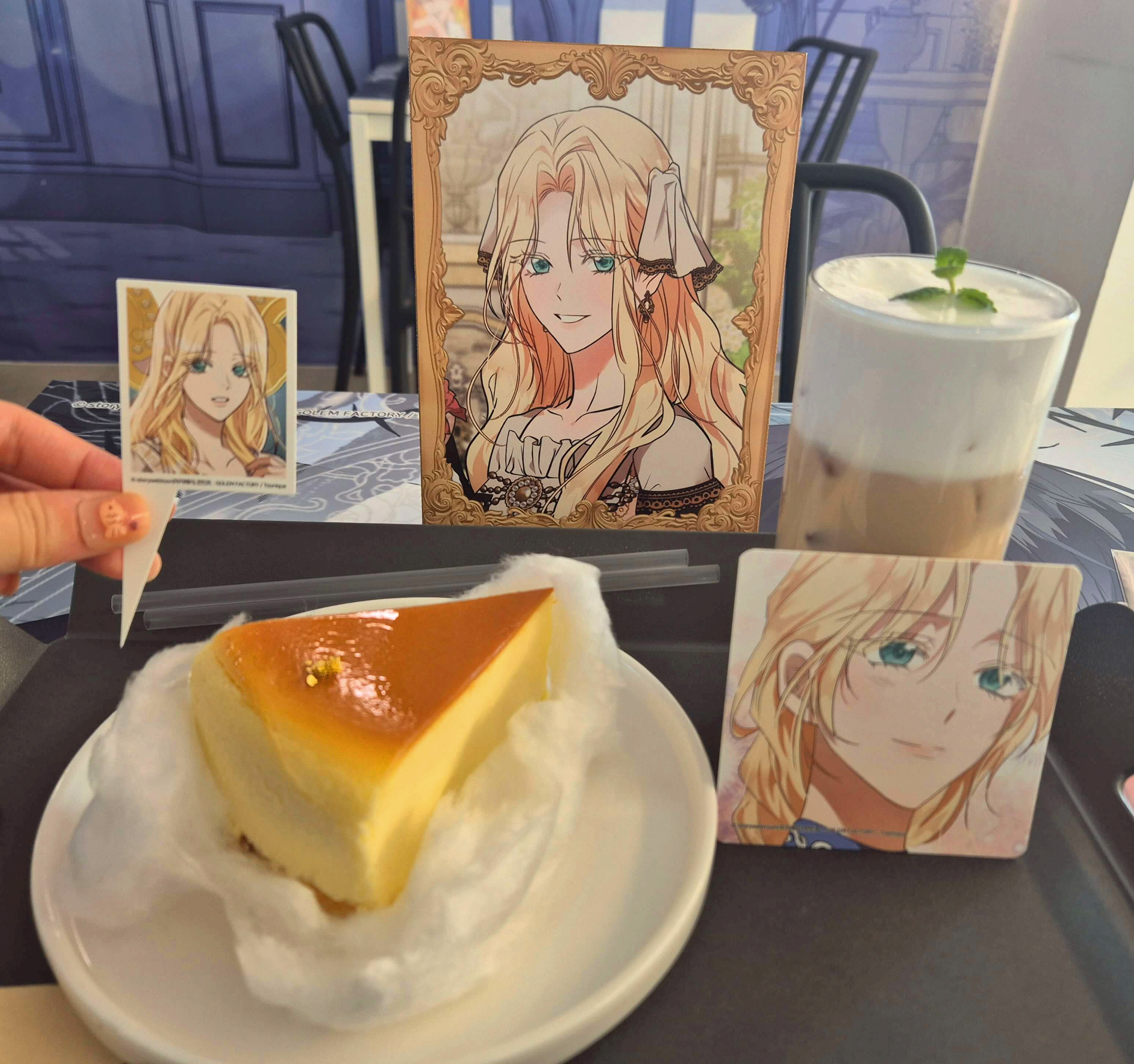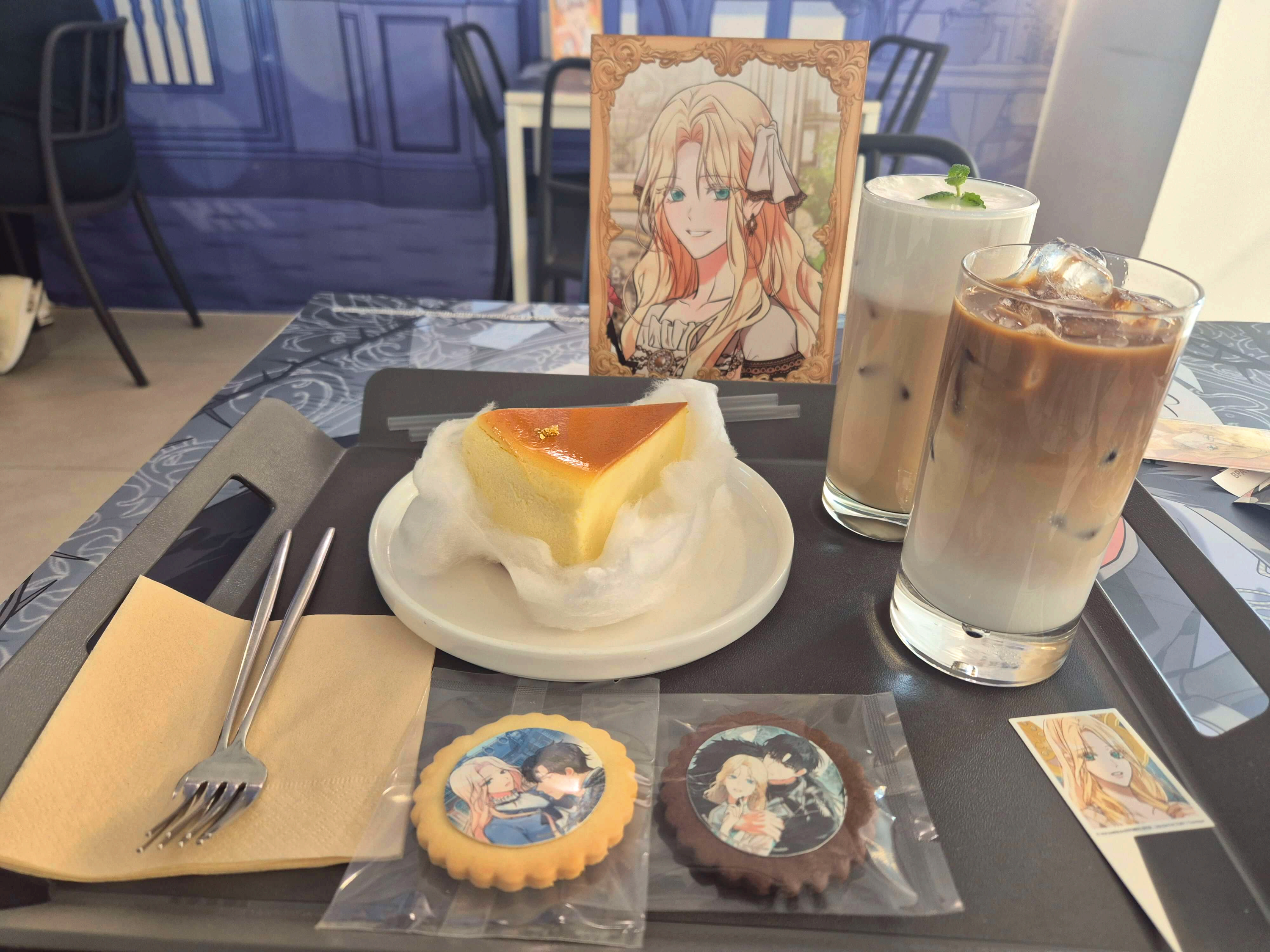 저는 이번에 티아의 밀크티&로산 치즈 케이크, 세드릭의 콜드브루 크림 라떼, 일러스트 쿠키 를 먹었습니다!
