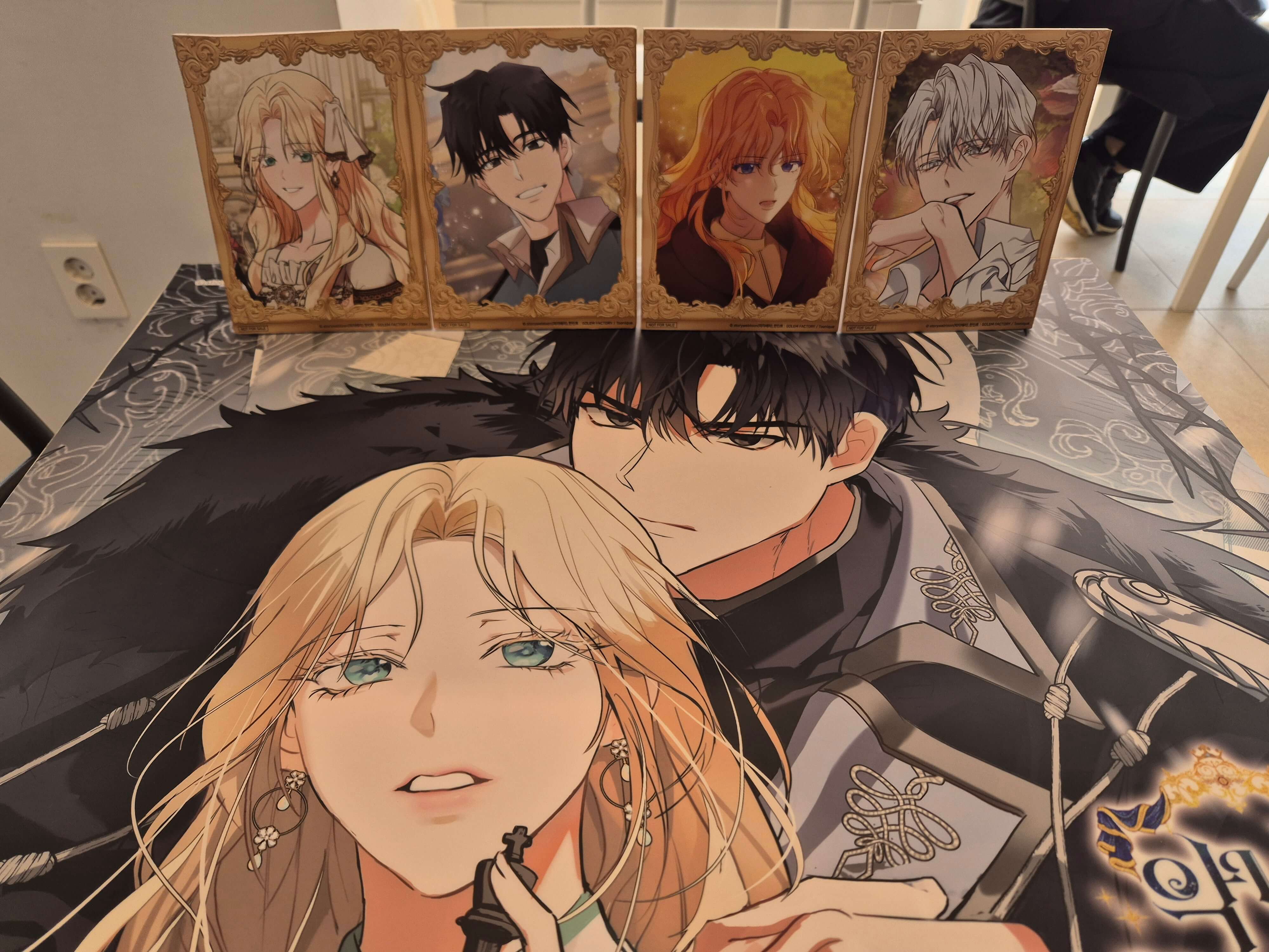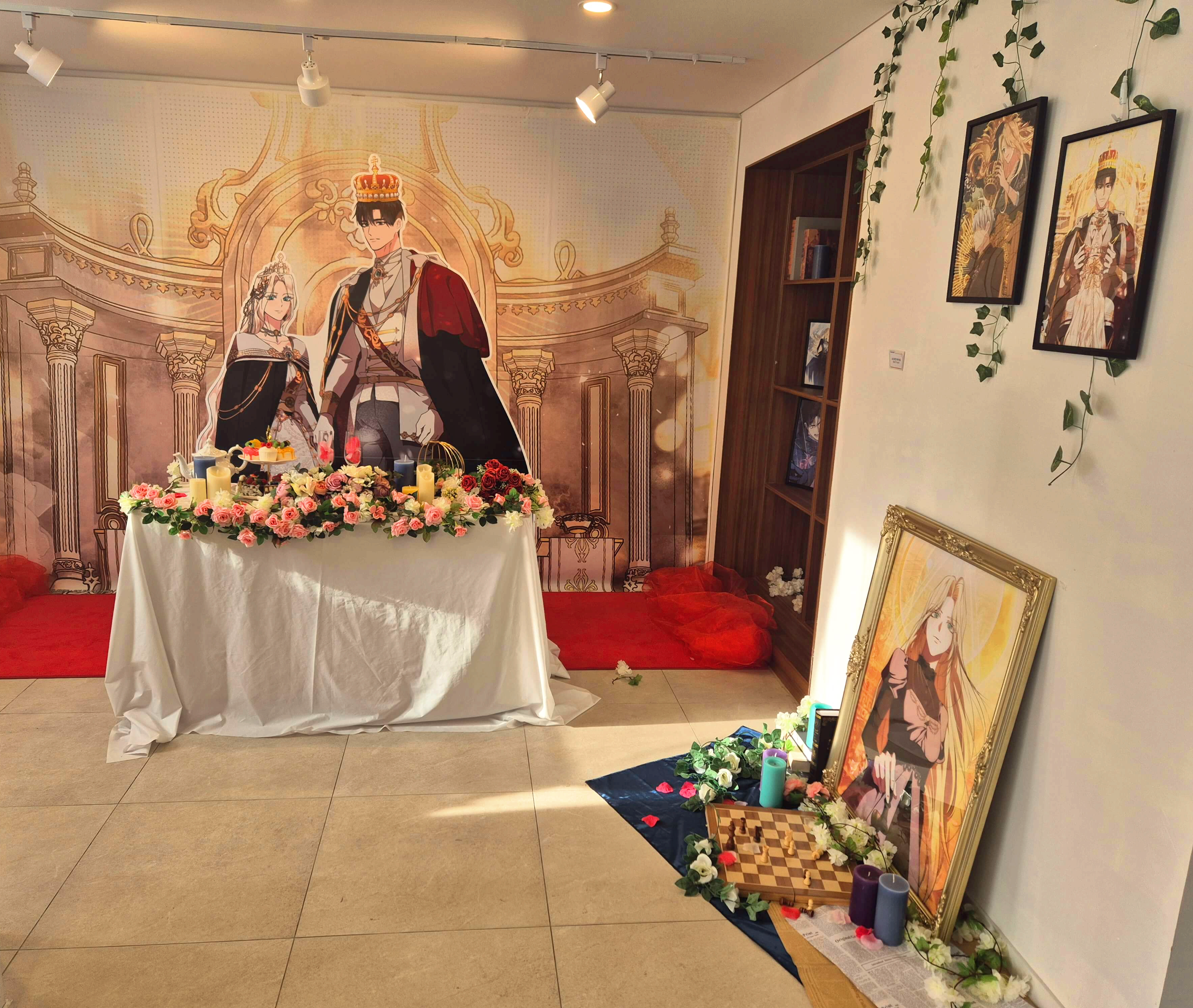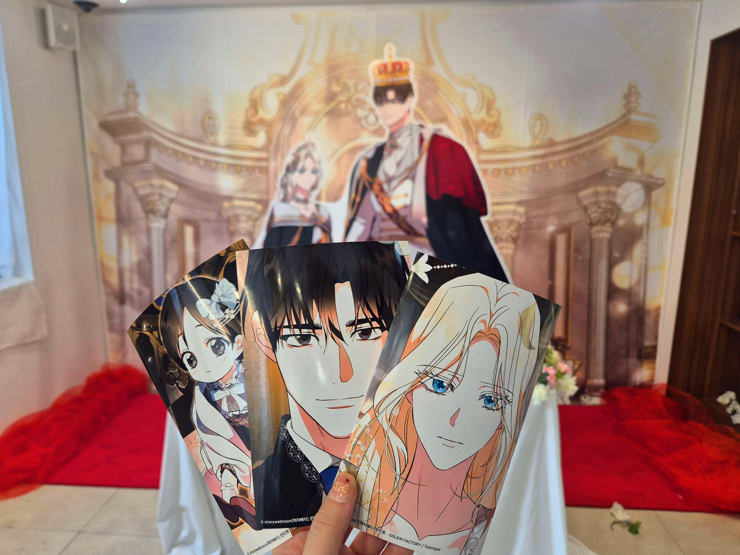 책상은 악두산 웹툰 표지와 캐릭터 별 일러스트 등신대로 장식되어 있는데요:)