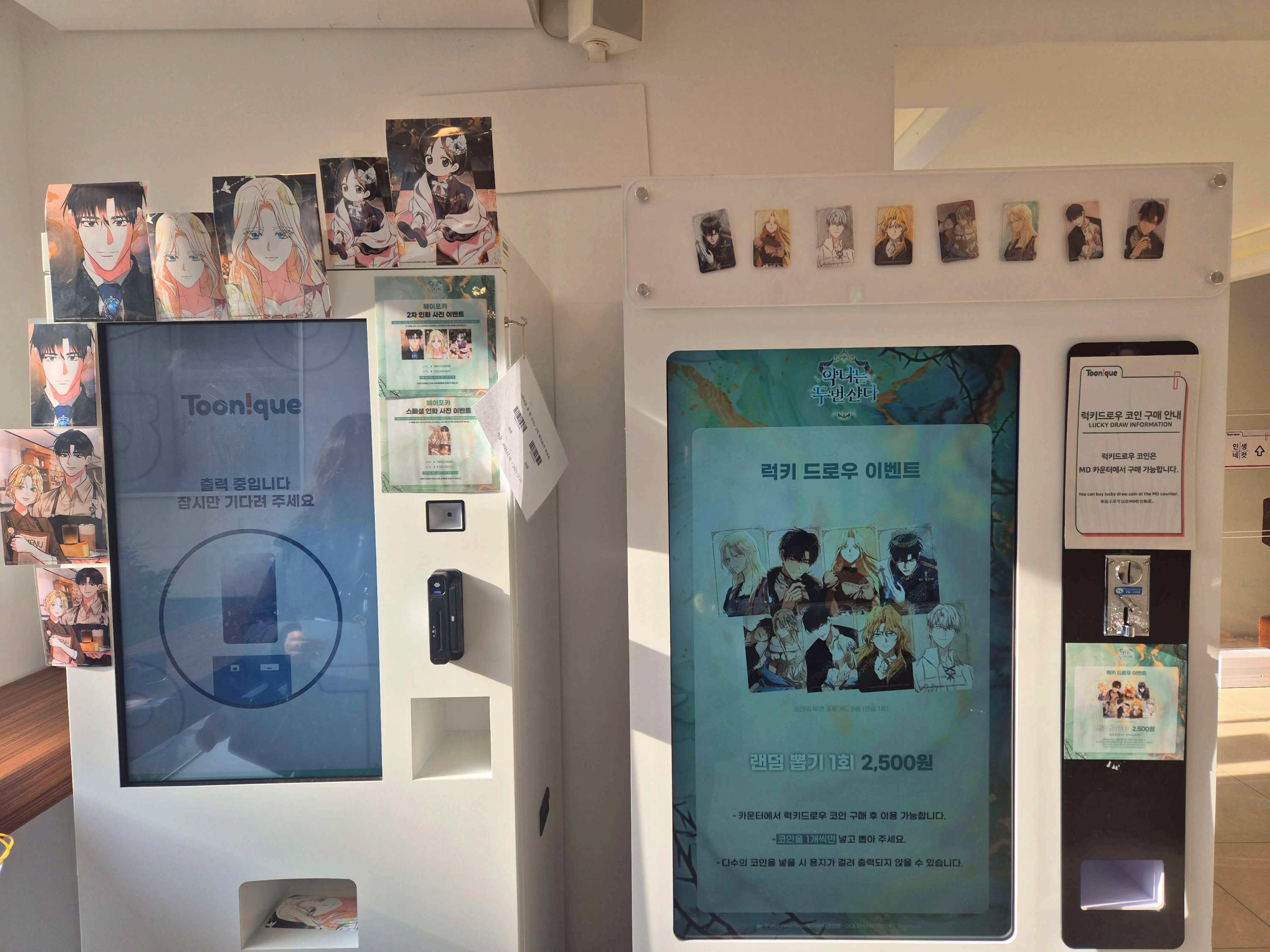기계에 코인을 넣으면 포토카드가 나오는데 생각보다 잘 빠지지 않아서 안쪽에서 쭉 뽑아야 나옵니다ㅋㅋㅋㅋㅋ