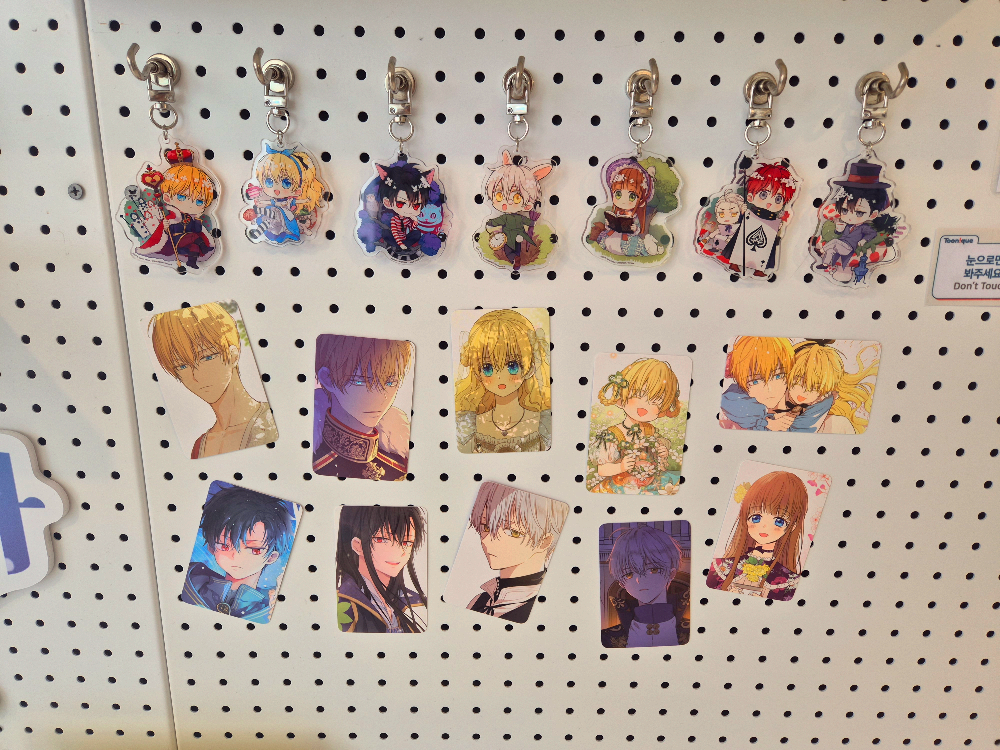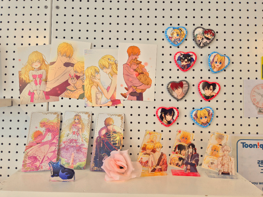 책상은 어공주 웹툰 표지랑 캐릭터 별 일러스트 작은 등신대로 장식되어 있는데요:)