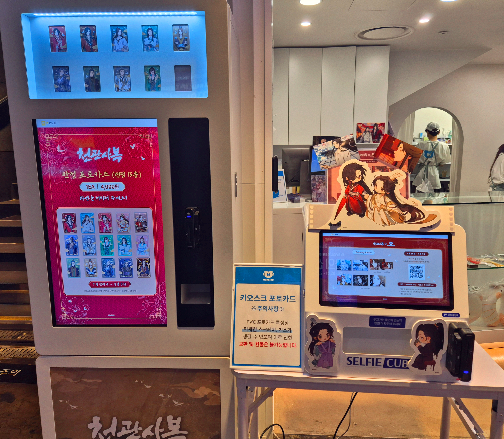 가게 앞 쪽에 천관사복 포토 카드를 뽑는 기계도 있었어요!