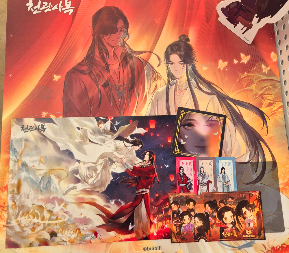 제가 가지고 있던 천관사복 굿즈 앞에 두니까 너무 잘 어울려서 뿌-듯했습니다:)