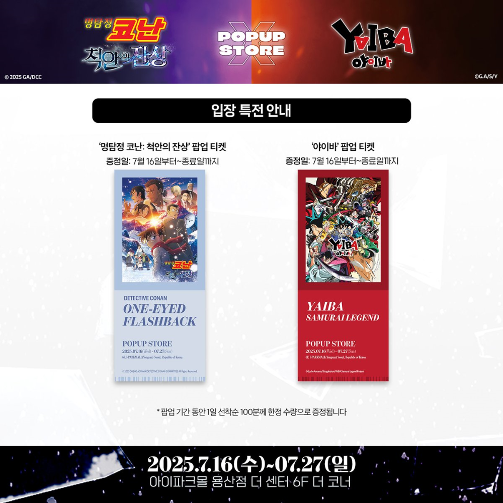 코난/야이바 팝업 스토어는 용산 아이파크몰 더 센터 6층 더 코너에서 진행합니다.