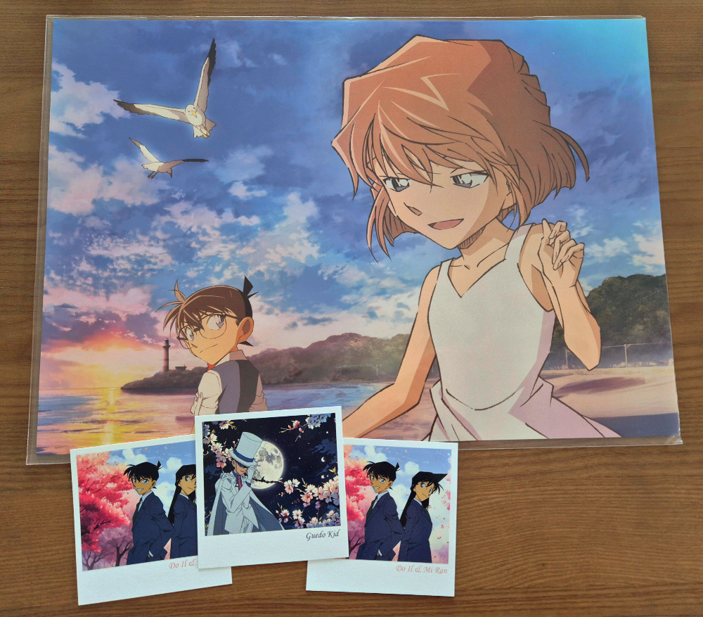 저는 가서 코난 포스터와 벚꽃 폴라로이드 랜덤 엽서를 구매 했습니다.