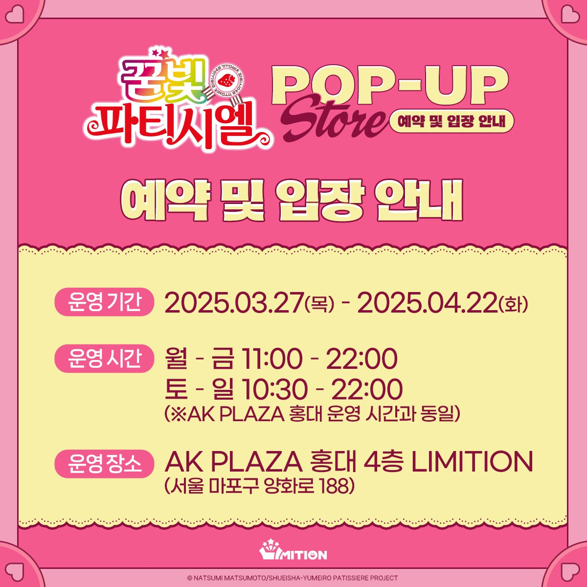 꿈빛 파티시엘 팝업 스토어는 홍대 AK 플라자 4층에서 진행 예정입니다!
