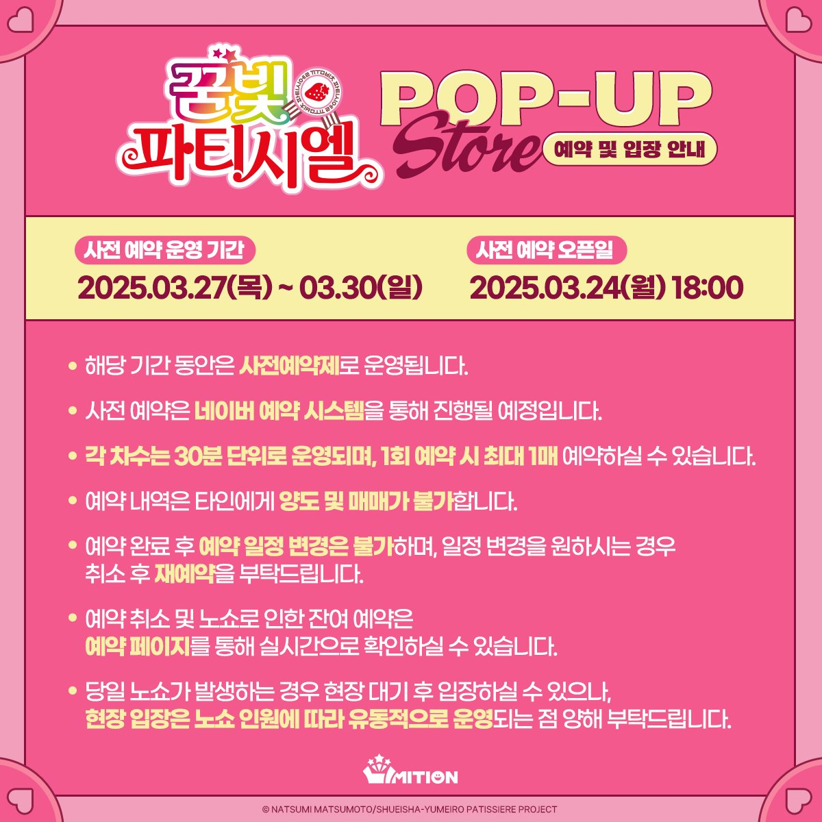 그래서 그런지 이번 꿈빛 파티시엘 팝업 스토어는 사전 예약을 진행한다고 합니다!