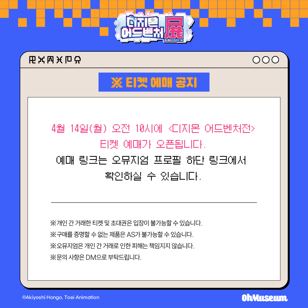 디지몬 어드벤처 전시회는 홍대 AK 플라자 4층에서 진행할 예정입니다!