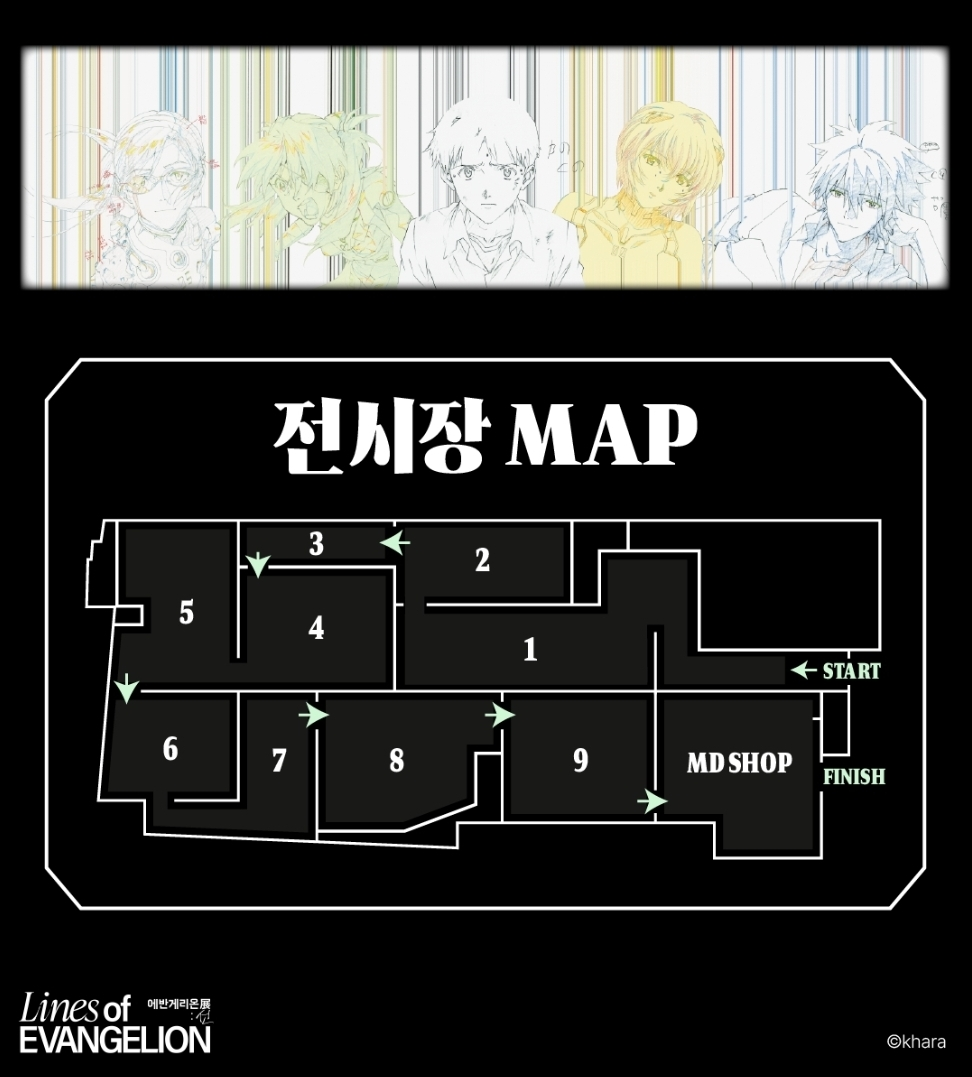 Lines of EVANGELION 선이 엮어낸, 영혼의 궤적. 이 전시는 [에반게리온]의 세계를 형성하는 '선(線)'에 초점을 맞춘 원화전입니다. 작품이 탄생할 때, 모든 것은 한 줄기의 선에서 시작됩니다. [에반게