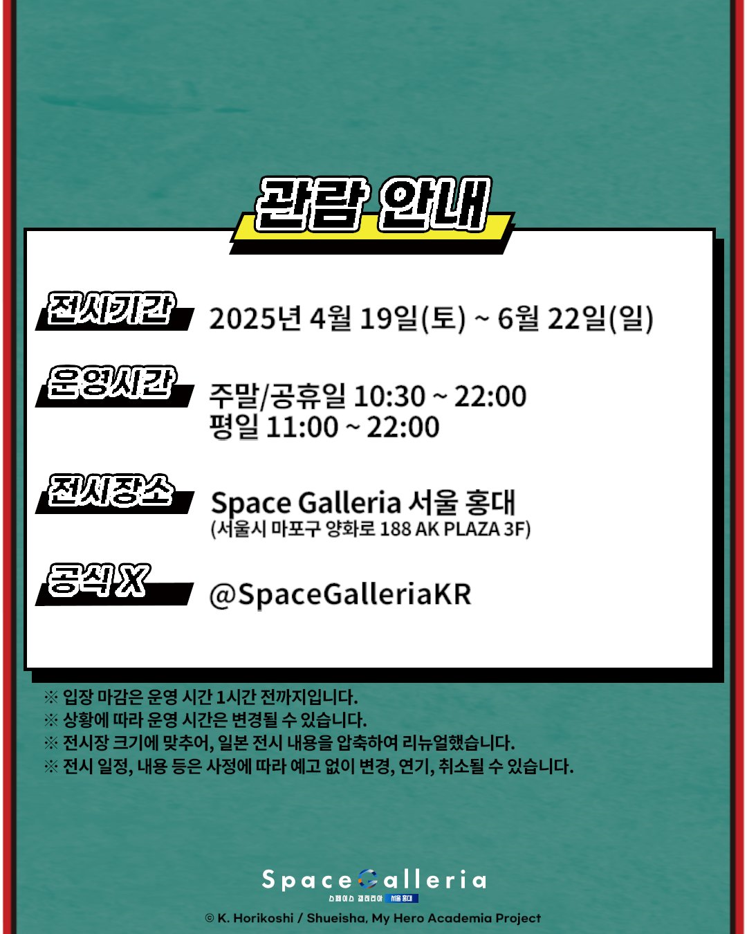 나의 히어로 아카데미아 전시회는 홍대 AK 플라자 3층에서 진행할 예정입니다!