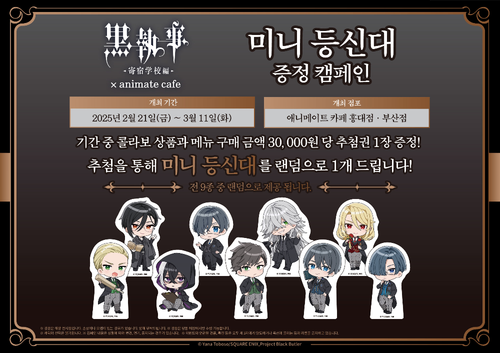 흑집사 콜라보 카페는 홍대와 부산 애니메이트에서 진행하고 있습니다.