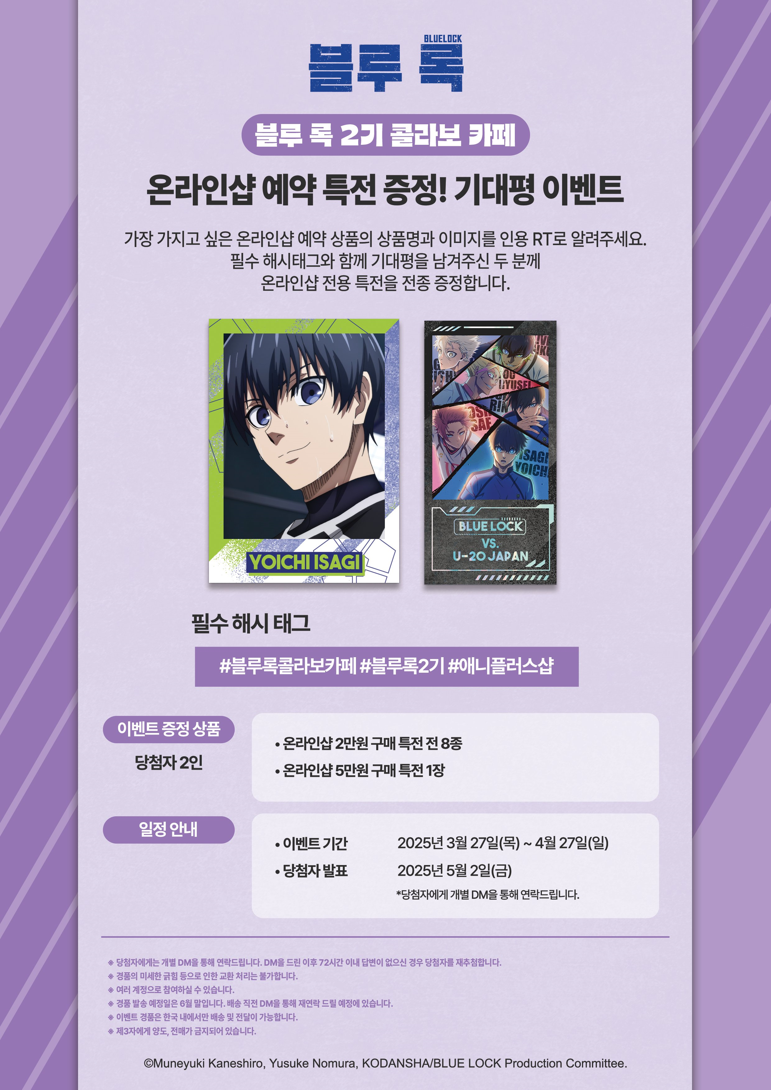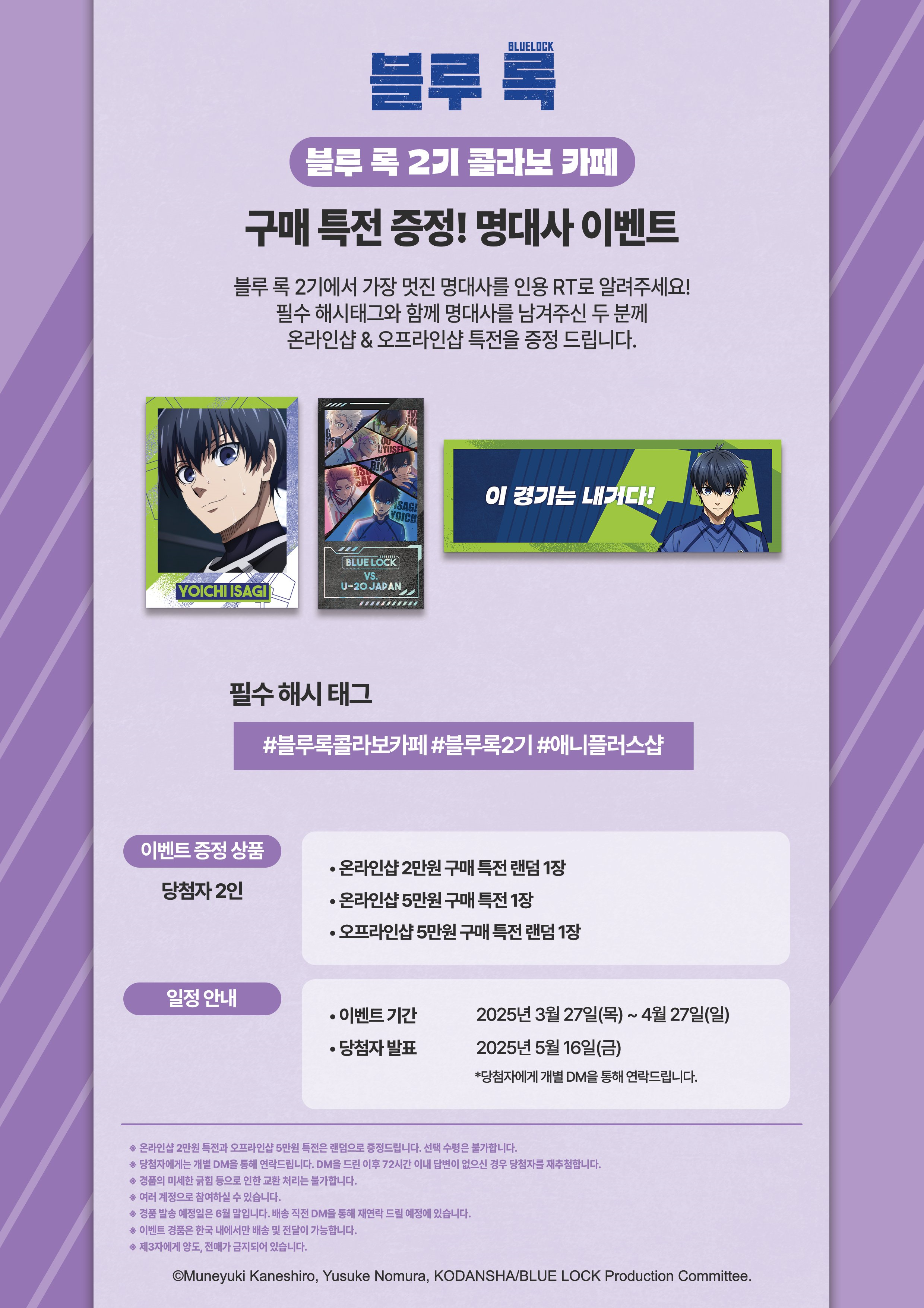사정 상 콜라보 카페에 가지 못하시더라도, 참여할 수 있는 이벤트가 있으니 블루록 팬분이시면 이벤트에 꼭 참여하세요.