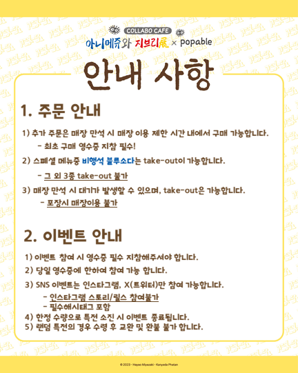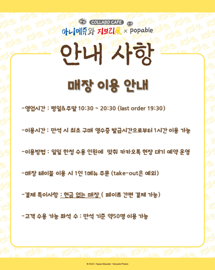 아니메쥬와 지브리 콜라보 카페 안내 사항은 위의 사진을 참고해주세요!