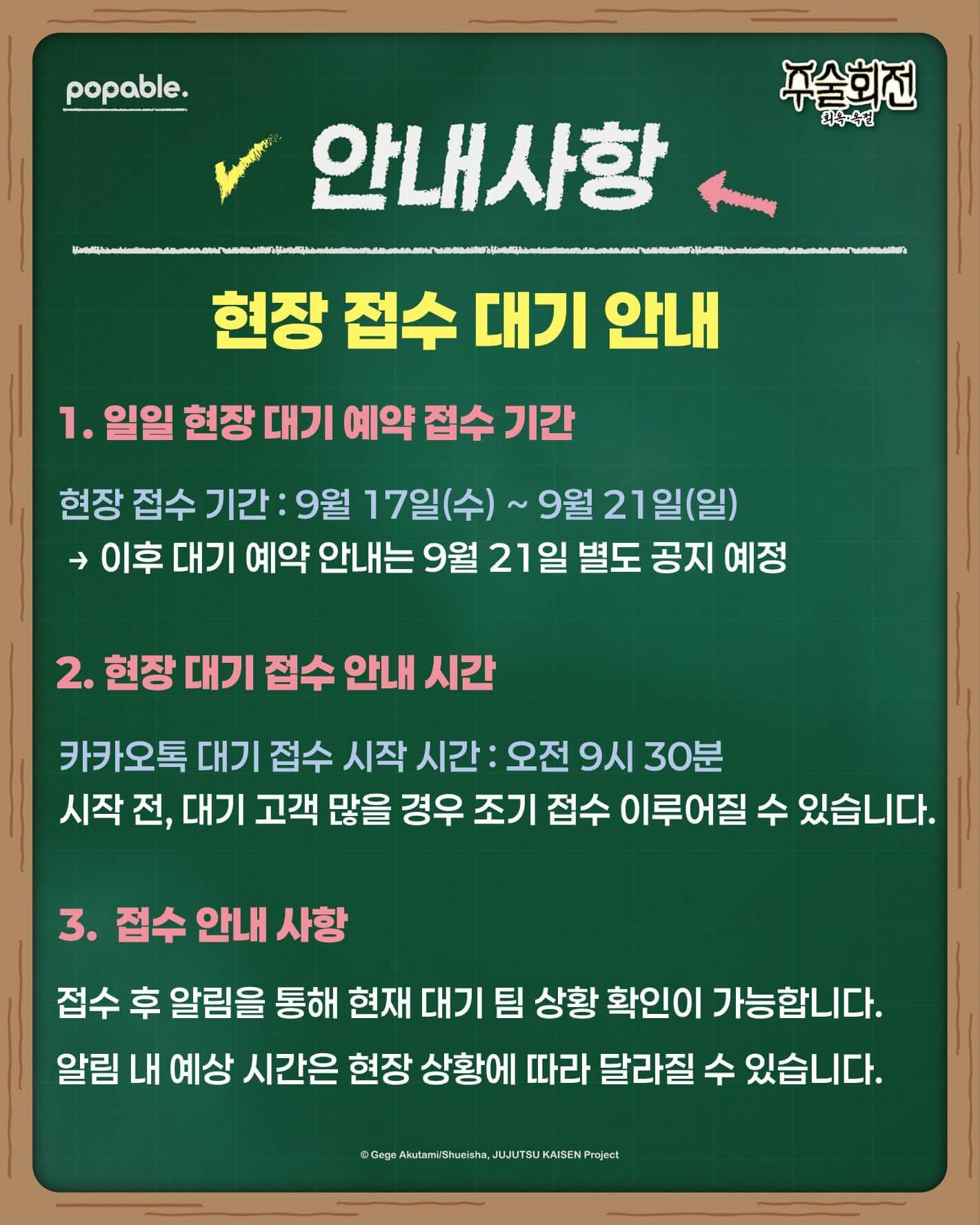 이번에는 현장 예약 안내가 없어, 기존에 진행했던 현장 예약 안내를 가지고 와서, 날짜는 다르니 무시해주세요!