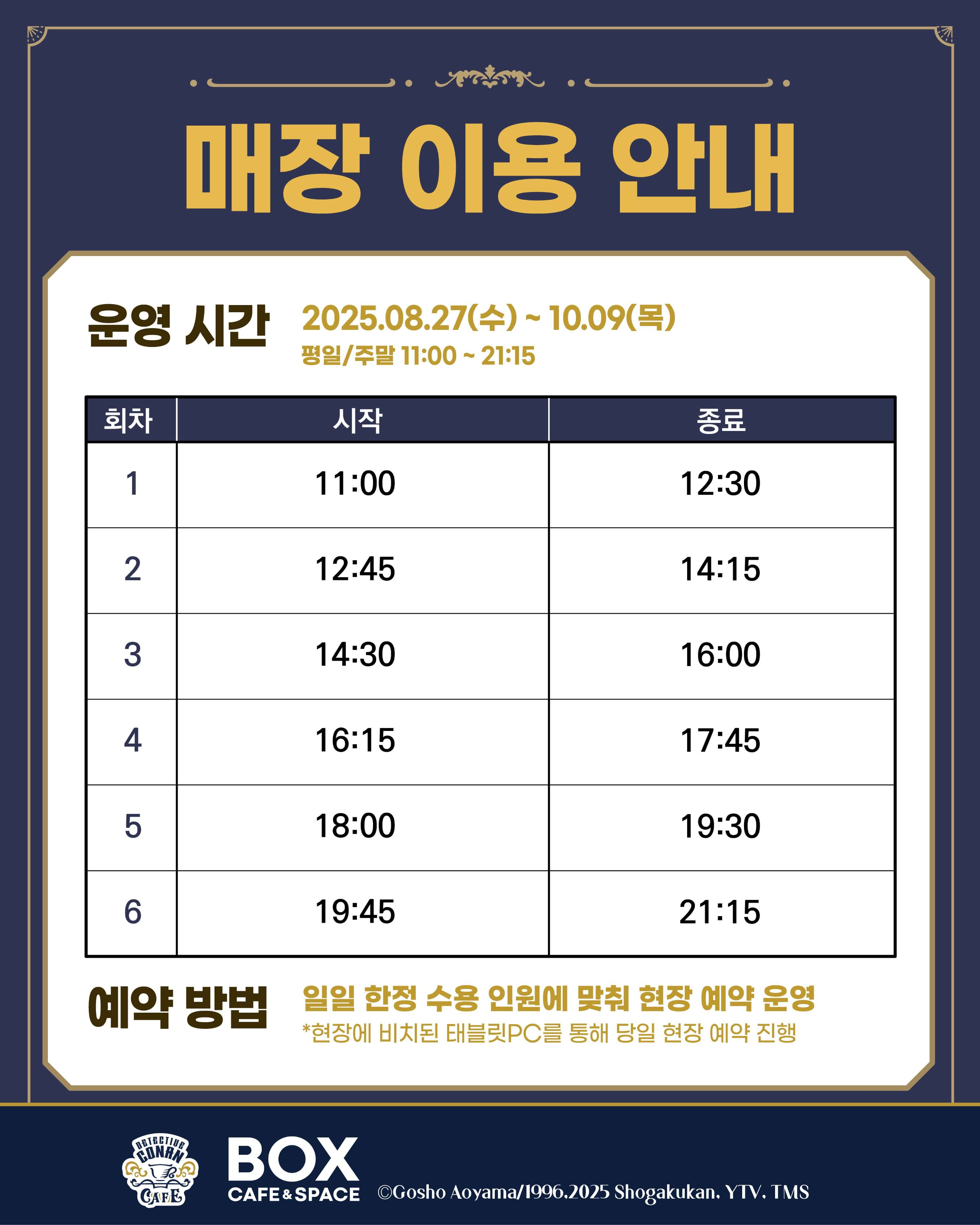 명탐정 코난 매장은 현장 예약을 받고 있습니다!