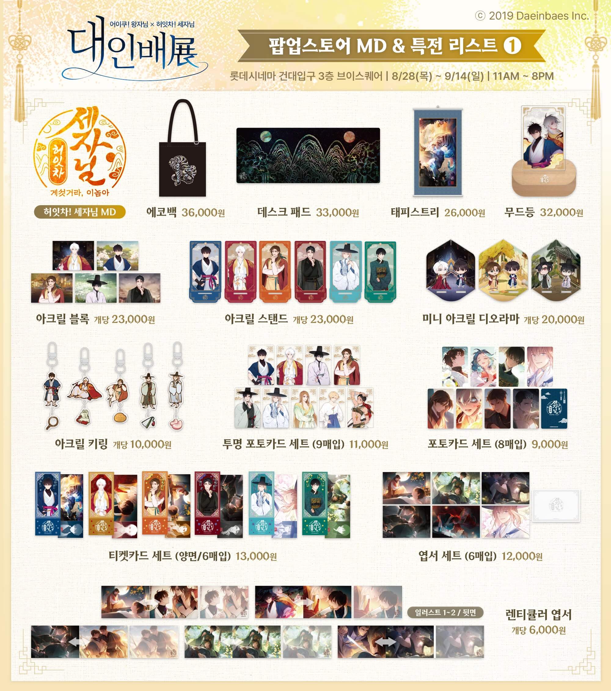 대인배전은 8월 28일부터 9월 14일까지 진행되니, 관심 있으신 분들은 꼭 방문해보세요!