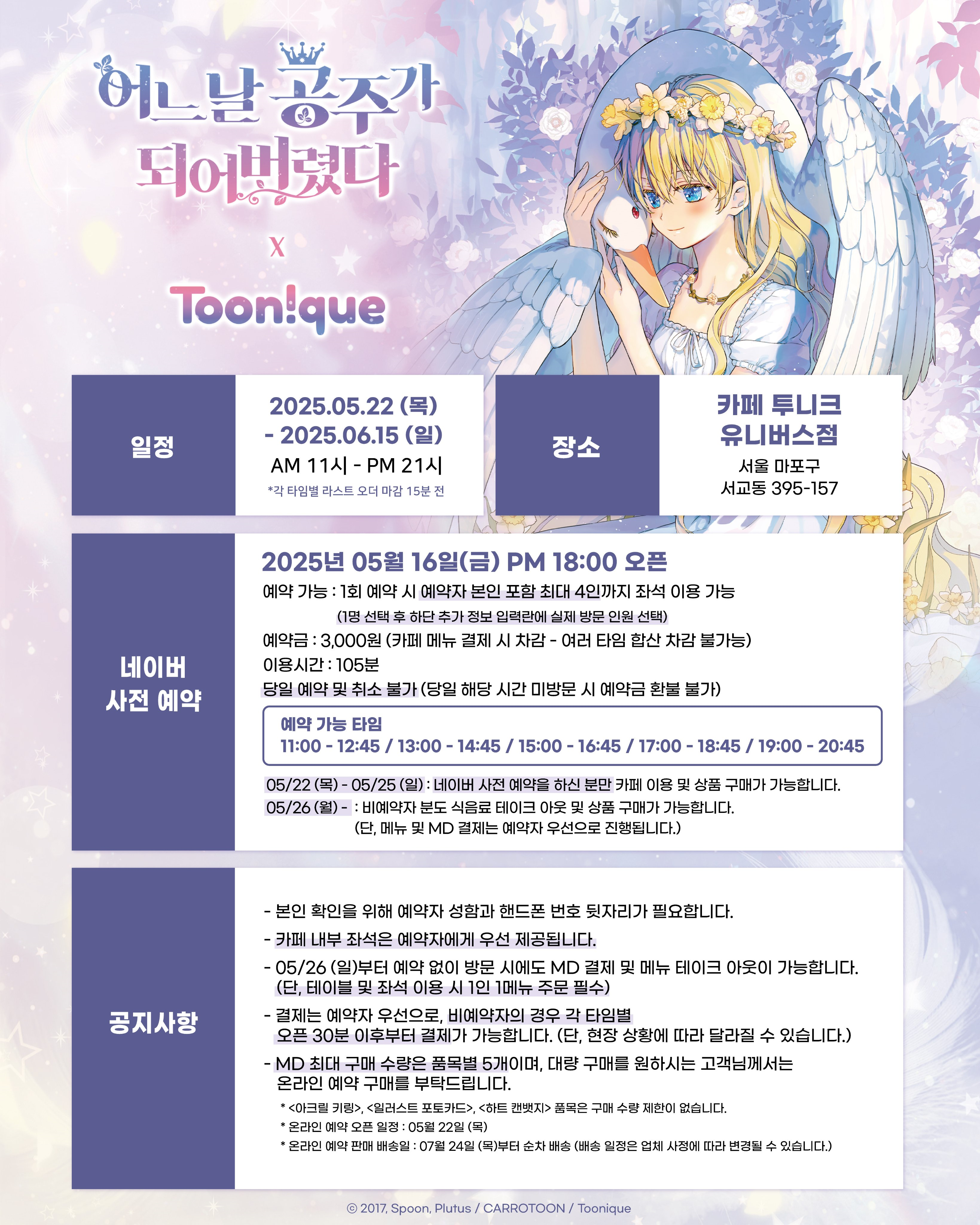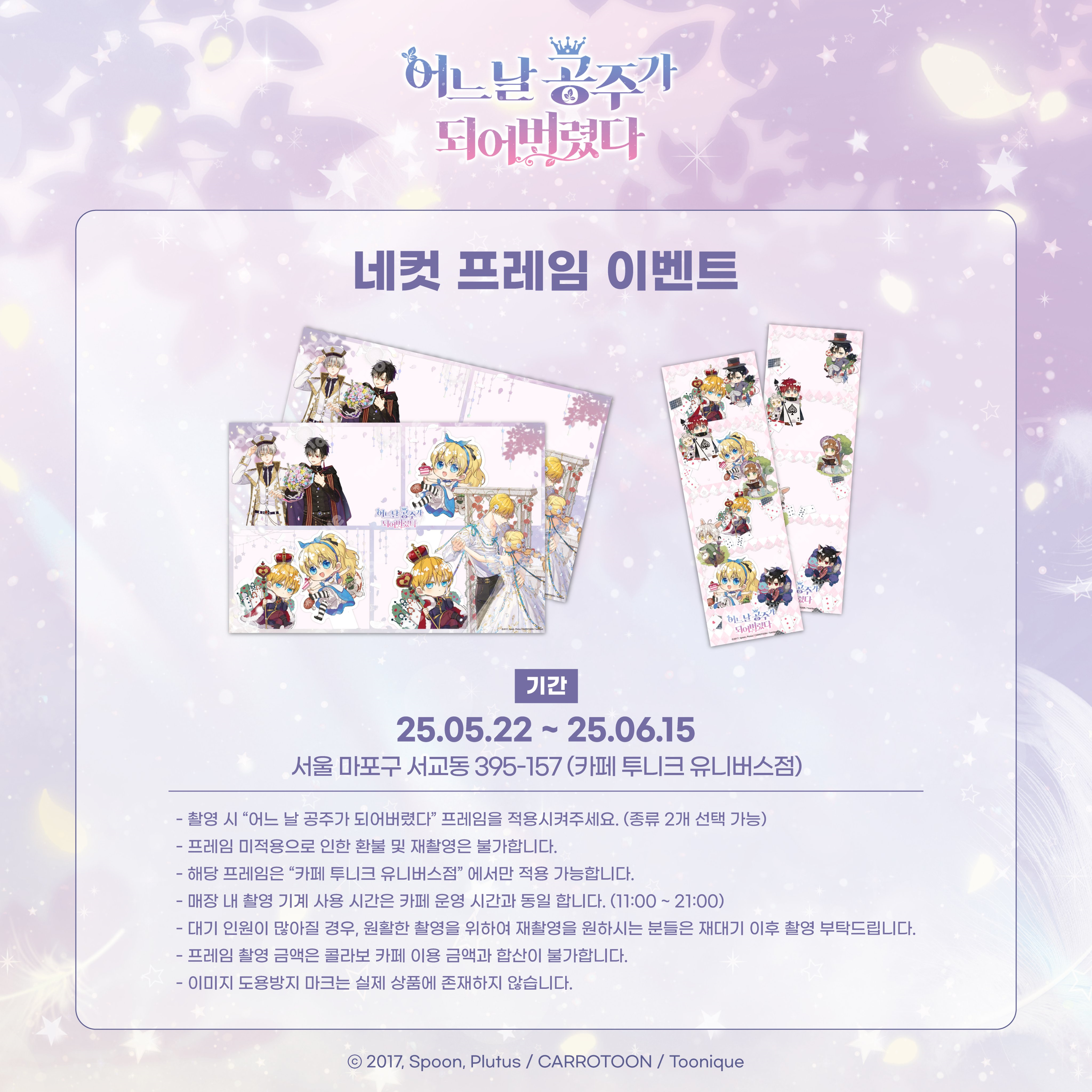 어느날 공주가 되어버렸다 콜라보 카페는 투니크 유니버스점에서 진행하고 있습니다.