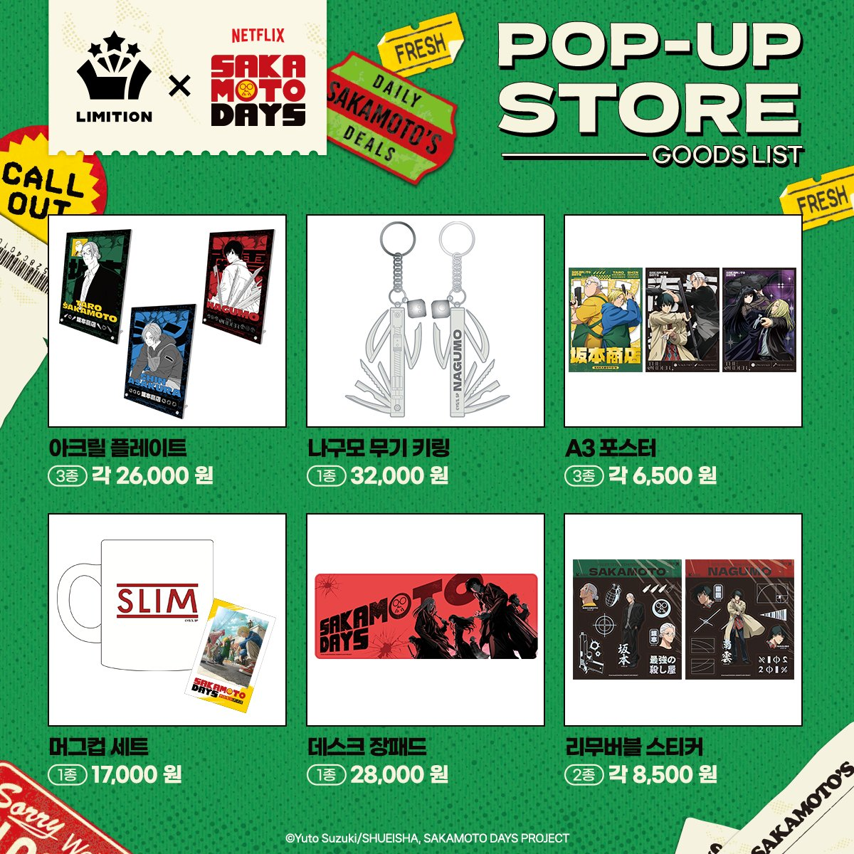 여기까지 사카모토 데이즈 팝업 스토어 정보였습니다.